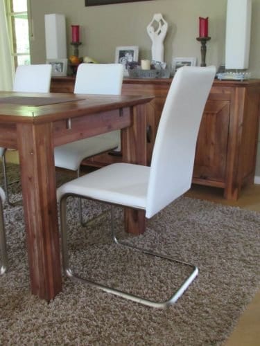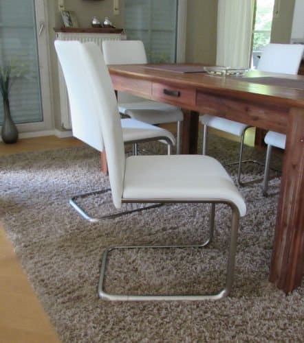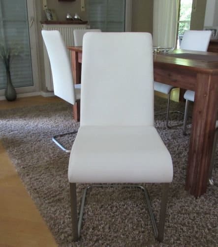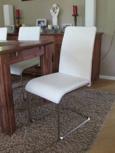 Die Maße des Stuhls betragen: B 44/ H 95/ T 59 cm