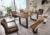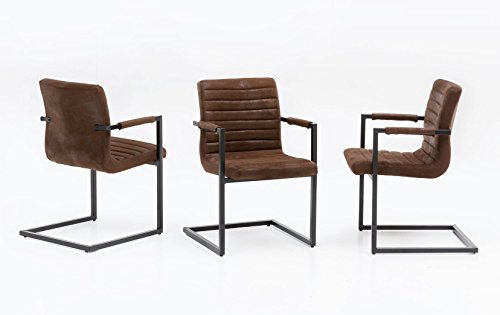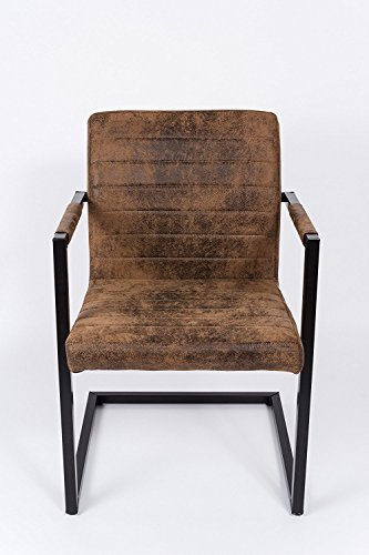 Moderner Esszimmerstuhl mit Bezug in Wildlederoptik – Armlehnstuhl, Eisengestell, Stoffbezug, braun